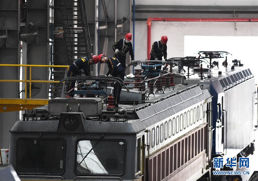 1月16日,重慶機(jī)務(wù)段職工在對機(jī)車車頂設(shè)備進(jìn)行檢修。 臨近春運,為確保春運旅客和貨物列車運輸安全,中國鐵路成都局集團(tuán)有限公司重慶機(jī)務(wù)段對全段機(jī)車進(jìn)行專項檢查、整修,為即將到來的春運做準(zhǔn)備。 新華社記者王全超攝