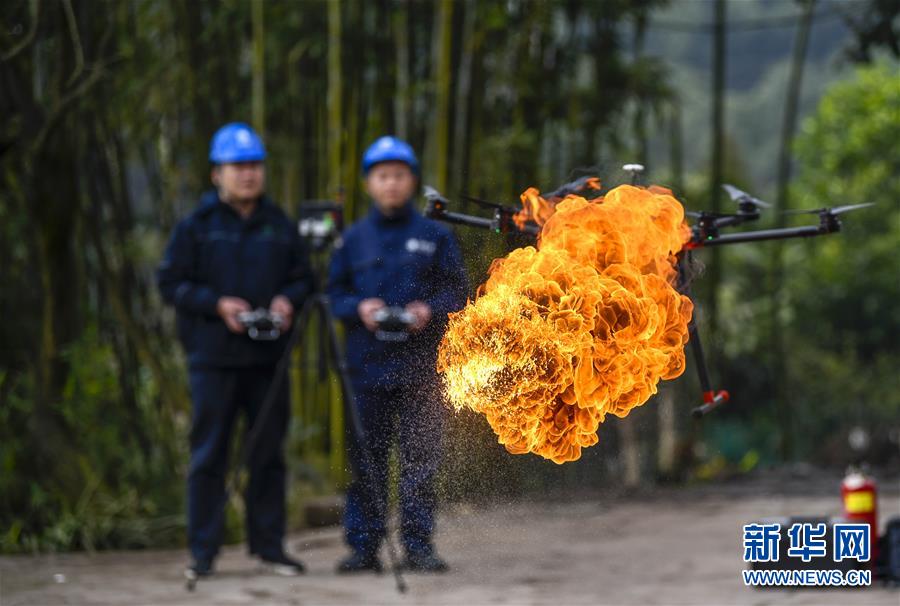 1月16日,噴火清障無人機(jī)在國網(wǎng)重慶永川供電公司無人機(jī)班兩名操作手的控制下進(jìn)行噴火清障作業(yè)演示。 1月16日,經(jīng)過3年多的研發(fā)和測試,重慶首臺噴火清障無人機(jī)在國網(wǎng)重慶永川供電公司無人機(jī)班正式投用。這臺多旋翼無人機(jī),通過搭載帶有燃料箱、油泵、自動(dòng)點(diǎn)火裝置的噴火吊艙任務(wù)模塊,可以對影響高空電力線路安全的飄掛物進(jìn)行定點(diǎn)障礙清除作業(yè)。 據(jù)噴火清障無人機(jī)研發(fā)負(fù)責(zé)人何濤介紹,過去高空清除異物主要靠人工進(jìn)行,為保證安全經(jīng)常需要停電作業(yè),因此他們結(jié)合實(shí)際工作經(jīng)驗(yàn)和高空電力線路的自身特點(diǎn),設(shè)計(jì)和制造出了噴火清障無人機(jī)。2018年測試期間,國網(wǎng)重慶永川供電公司無人機(jī)班在多種環(huán)境下成功執(zhí)行了50多次高空電力線路清障作業(yè)。 新華社記者 劉潺 攝