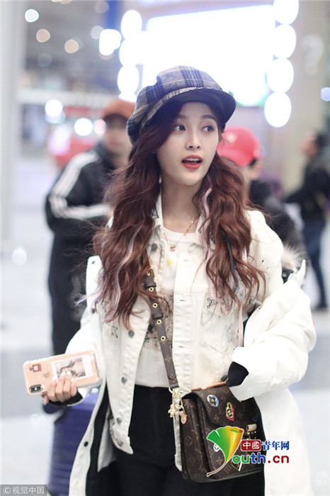 2019年1月17日,北京,吳宣儀現(xiàn)身機場。當(dāng)晚她不懼低溫輕裝亮相提前過春天,青春裝扮甜美又時尚。吳宣儀側(cè)顏精致紅唇吸睛,還被抓拍到撅嘴賣萌一臉無辜的表情。
