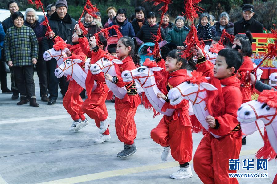 1月16日,孩子們?yōu)樾绿链宕迕癖硌輦鹘y(tǒng)非遺項(xiàng)目——下箬馬燈。下箬馬燈是發(fā)源于長興縣的民間舞蹈,距今已有1000多年歷史。 臨近春節(jié),浙江省長興縣開發(fā)區(qū)中心幼兒園的老師和孩子們來到長興縣太湖街道下屬的新塘村,為村民表演文藝節(jié)目,用喜慶的傳統(tǒng)舞蹈營造節(jié)日氣氛。另外孩子們還用紙盒、瓶子、彩色包裝紙等廢舊物品制作了環(huán)?;?,送給村民,倡導(dǎo)低碳環(huán)保的節(jié)日新風(fēng)。 新華社記者 徐昱 攝