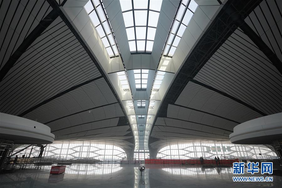 工人在北京大興國際機(jī)場主航站樓內(nèi)進(jìn)行裝修施工(2018年12月29日攝)。新華社記者 鞠煥宗 攝