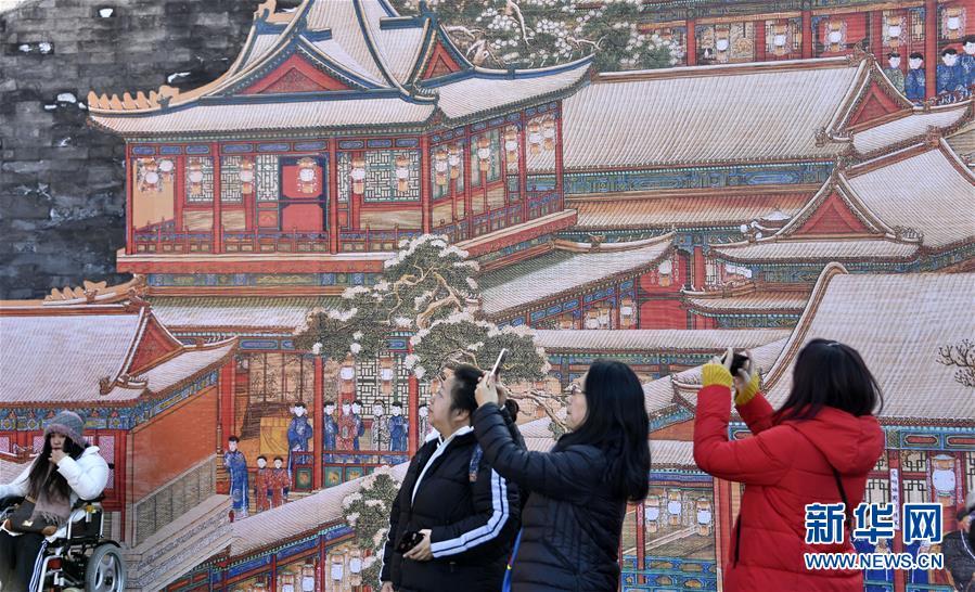 1月25日,游人在故宮內(nèi)拍攝古代宮廷過(guò)春節(jié)的繪畫。 春節(jié)將至,北京故宮博物院內(nèi)張燈結(jié)彩,到處懸掛著宮燈、萬(wàn)壽燈、年畫、門神、福字等古代宮廷節(jié)日裝飾品,讓來(lái)自國(guó)內(nèi)外的游人感受到濃濃的年味。 新華社記者 李欣攝