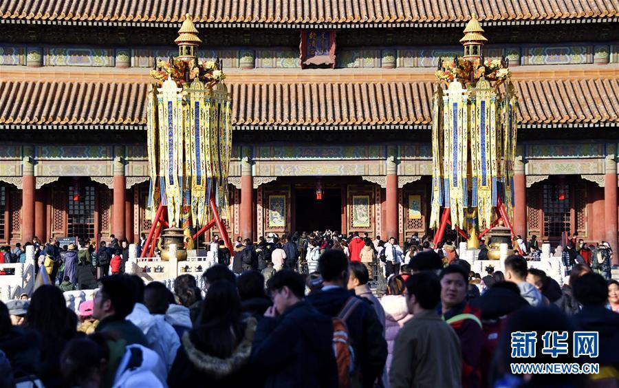 這是在故宮內(nèi)拍攝的宮廷萬(wàn)壽燈(1月25日攝)。 春節(jié)將至,北京故宮博物院內(nèi)張燈結(jié)彩,到處懸掛著宮燈、萬(wàn)壽燈、年畫、門神、福字等古代宮廷節(jié)日裝飾品,讓來(lái)自國(guó)內(nèi)外的游人感受到濃濃的年味。 新華社記者 李欣攝