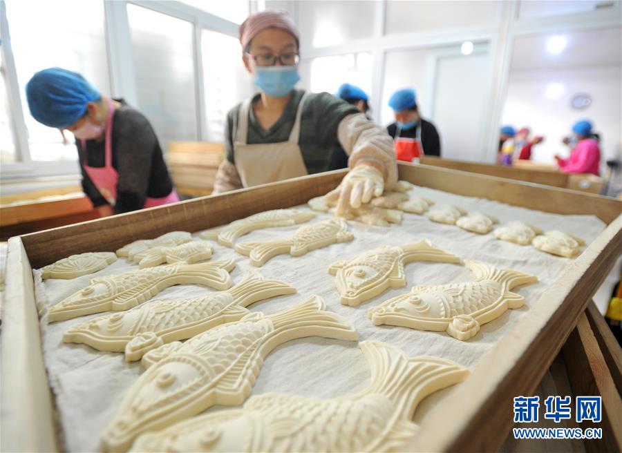 1月25日,河北棗強(qiáng)一家食品公司的面點(diǎn)師在手工制作花糕。 春節(jié)臨近,河北省棗強(qiáng)縣面食加工廠的面點(diǎn)師傅們忙著趕制花糕、花饃等傳統(tǒng)面食,以供應(yīng)節(jié)日市場。當(dāng)?shù)赜羞^年蒸花糕、做花饃的習(xí)俗,寓意步步登高,生活一年比一年好。 新華社記者 李曉果攝
