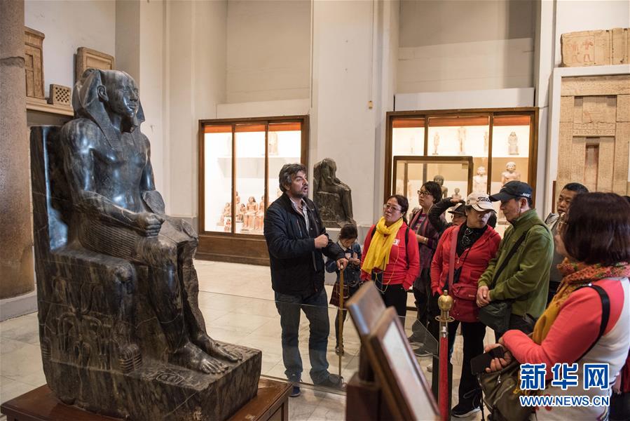 2月9日,在埃及首都開羅,中國(guó)游客跟隨埃及導(dǎo)游參觀埃及博物館。 雖然中國(guó)人過春節(jié)的傳統(tǒng)是返鄉(xiāng)回家,但越來越多的國(guó)人選擇在春節(jié)期間走出國(guó)門,利用春節(jié)假期外出旅游。 新華社記者 孟濤 攝