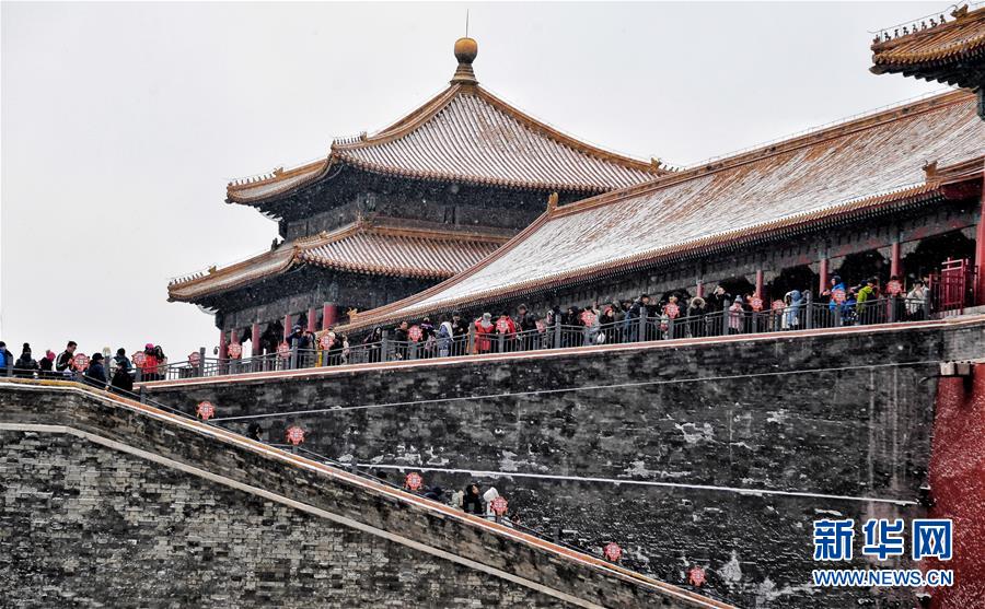 2月14日,游客在雪中游覽北京故宮。 當(dāng)日,北京降雪,大批游人來(lái)到故宮游覽賞雪。 新華社記者 羅曉光 攝