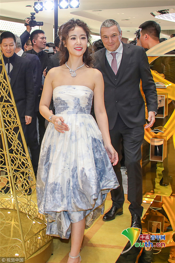 林心如穿抹胸裙秀香肩 淺笑盈盈女人味十足