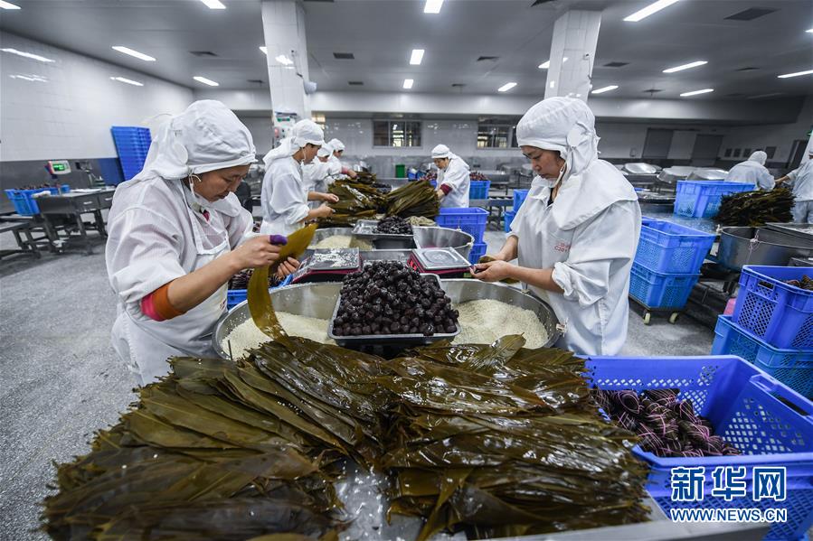 烏鎮(zhèn)三珍齋傳統(tǒng)食品廠的工人在包粽子(11月20日攝)。  新華社記者 徐昱 攝
