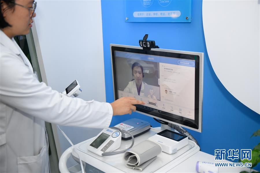 11月6日,烏鎮(zhèn)互聯(lián)網(wǎng)醫(yī)院的員工在操作“智能醫(yī)務(wù)室”與醫(yī)生的視頻連線功能。據(jù)了解,“智能醫(yī)務(wù)室”由智能移動(dòng)醫(yī)療一體機(jī)、智能藥柜以及一系列檢查設(shè)備組成,根據(jù)健康檔案和檢查結(jié)果,視頻連接家庭醫(yī)生就能解決常見的醫(yī)療健康問題。  新華社記者黃宗治攝