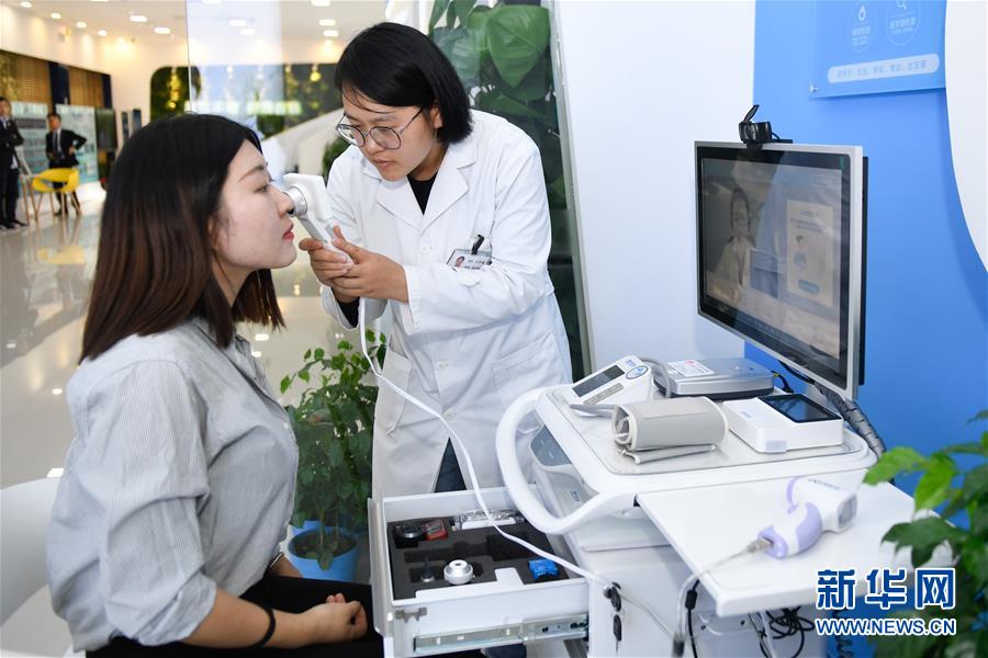 11月6日,參觀者在烏鎮(zhèn)互聯(lián)網(wǎng)醫(yī)院體驗(yàn)“智能醫(yī)務(wù)室”的體檢功能。據(jù)了解,“智能醫(yī)務(wù)室”由智能移動(dòng)醫(yī)療一體機(jī)、智能藥柜以及一系列檢查設(shè)備組成,根據(jù)健康檔案和檢查結(jié)果,視頻連接家庭醫(yī)生就能解決常見的醫(yī)療健康問題。  新華社記者黃宗治攝
