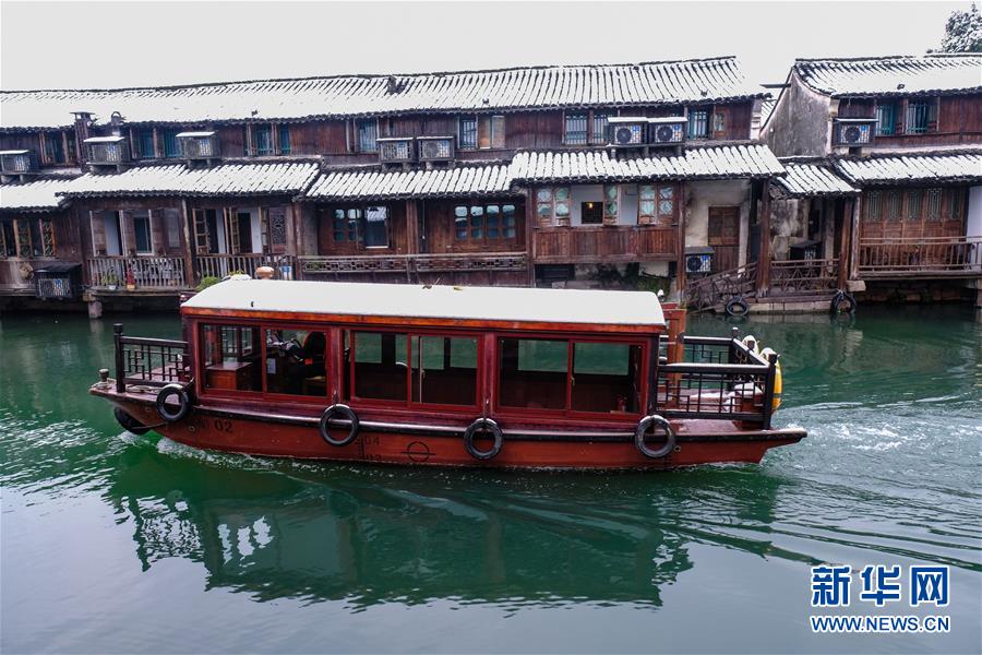 12月9日,游船行駛在烏鎮(zhèn)景區(qū)的河道內(nèi)。 受冷空氣影響,浙江省桐鄉(xiāng)市迎來大范圍降雪,千年古鎮(zhèn)烏鎮(zhèn)被厚厚的白雪覆蓋。小橋流水、白墻黑瓦的江南水鄉(xiāng)古鎮(zhèn),呈現(xiàn)出冬日雪鄉(xiāng)的獨特韻味,吸引各地游客前來觀賞。 新華社記者 徐昱 攝