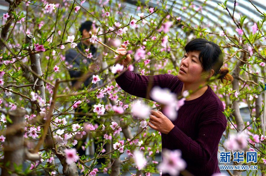 2月25日,果農在邯鄲市邯山區(qū)碩果春農業(yè)園大棚內為桃花授粉。 隨著氣溫升高,河北省邯鄲市邯山區(qū)碩果春農業(yè)園大棚內的桃花競相綻放。 新華社記者 王曉 攝