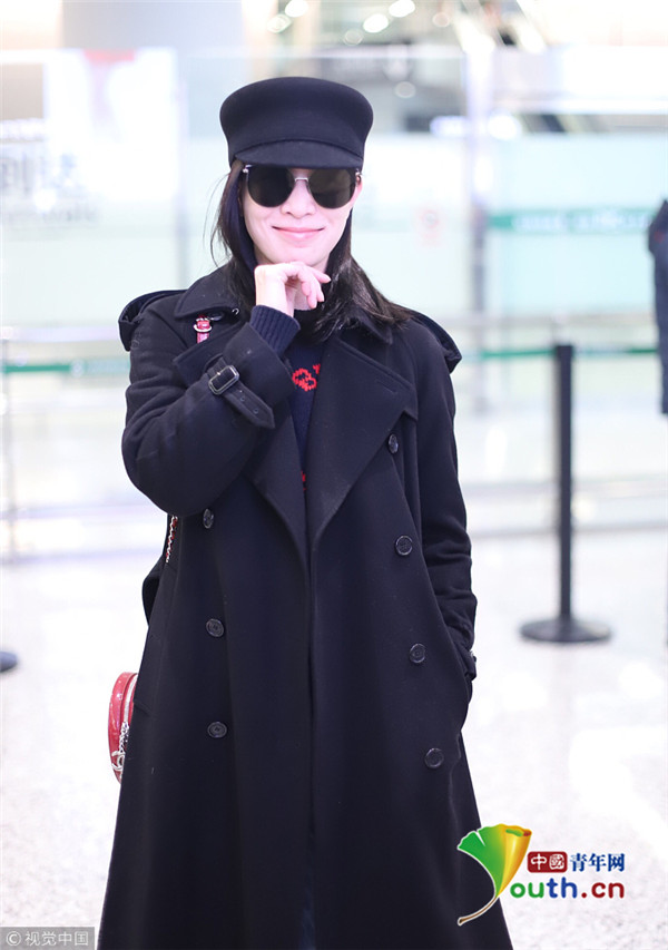 2019年2月28日,上海,佘詩曼現(xiàn)身機(jī)場(chǎng)。她頭戴禮帽,身穿黑色大衣走路帶風(fēng)氣場(chǎng)強(qiáng),單手托腮甜笑瞬間暖人心。