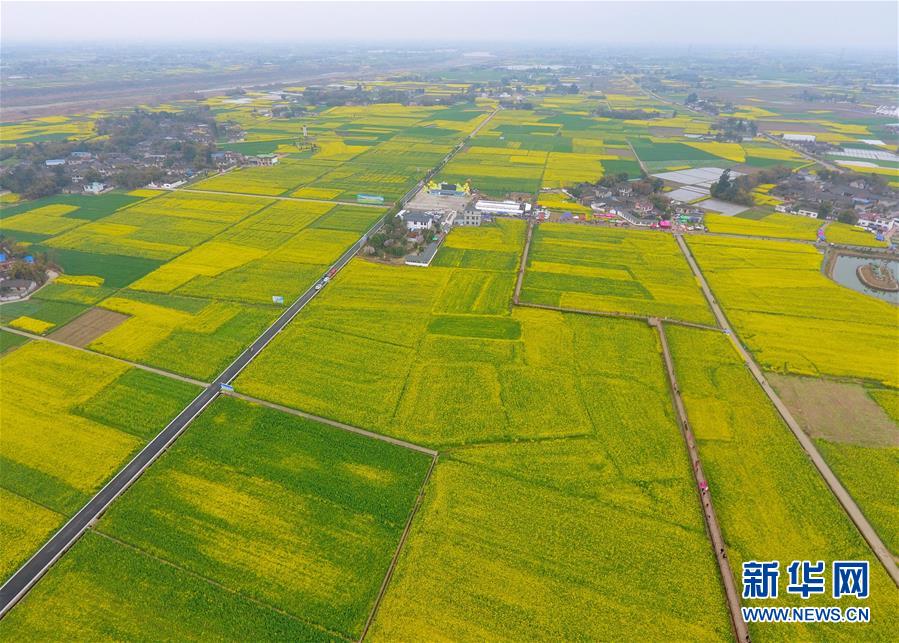 這是無人機航拍的廣漢市油菜花田(3月6日攝)。 新華社記者劉坤攝