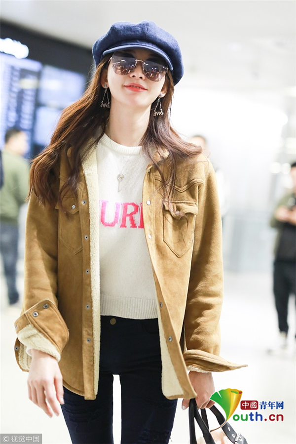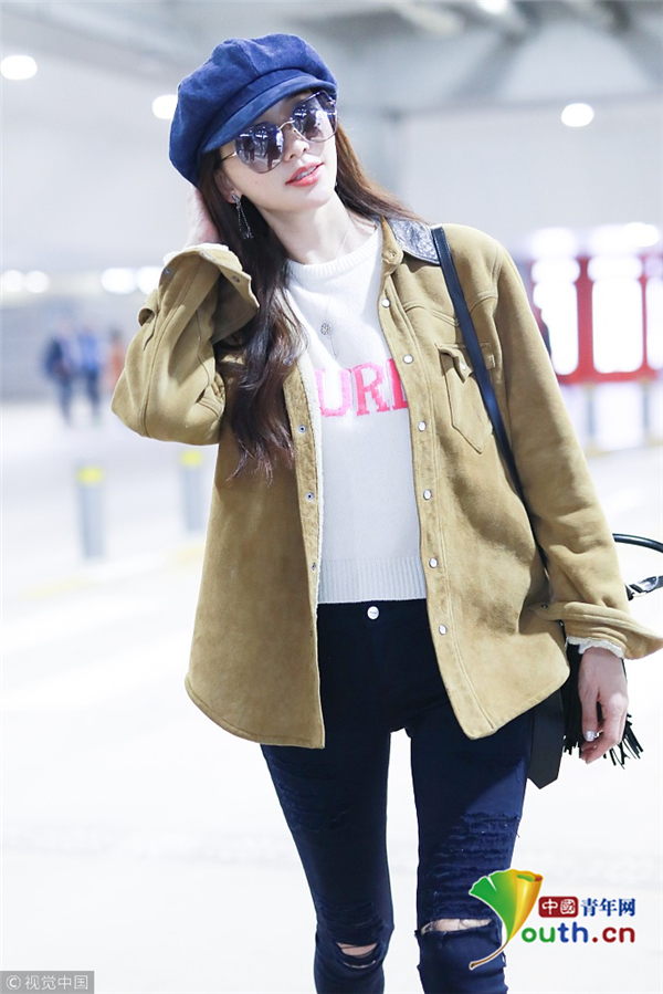3月27日,林志玲從北京機場飛往上海機場。她穿著白毛衣搭配黑色破洞牛仔褲,秀出纖細美腿,對鏡頭微笑甜美十足。