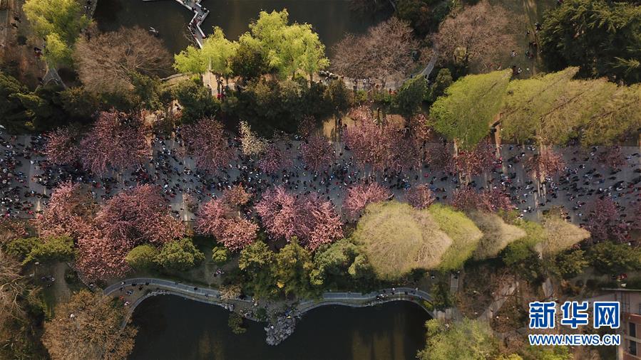 3月31日,游客在中國(guó)科學(xué)技術(shù)大學(xué)東區(qū)觀賞櫻花(無人機(jī)拍攝)。