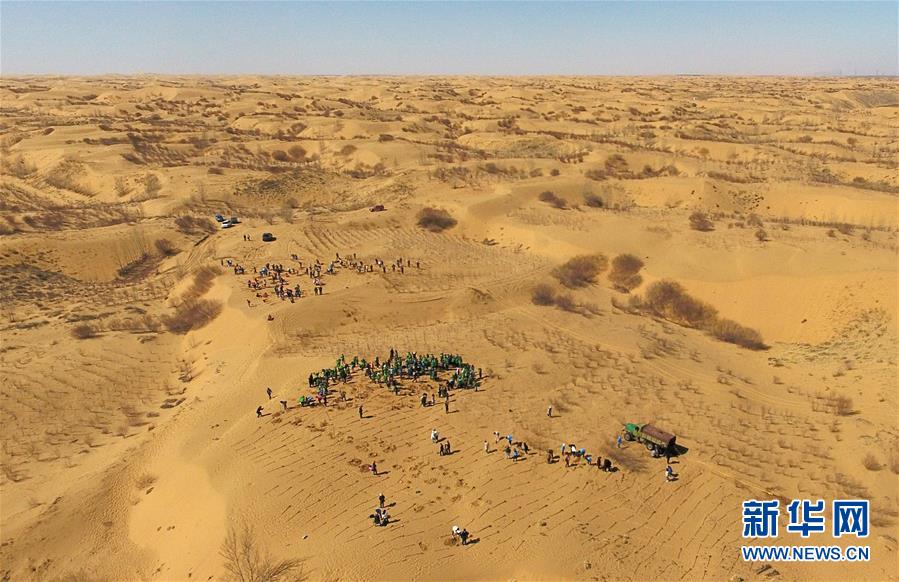 3月31日,中韓青年在內(nèi)蒙古達(dá)拉特旗庫(kù)布其沙漠中植樹(無(wú)人機(jī)拍攝)。 當(dāng)日,200余名中韓兩國(guó)青年志愿者來(lái)到內(nèi)蒙古自治區(qū)達(dá)拉特旗庫(kù)布其沙漠種樹。2006年起,中國(guó)國(guó)際青年交流中心與韓國(guó)韓中文化青少年協(xié)會(huì)組織兩國(guó)青年志愿者在庫(kù)布其沙漠植樹,參與防沙固沙項(xiàng)目。截至目前已植樹850多萬(wàn)株,造林3萬(wàn)多畝。 新華社記者 劉磊 攝