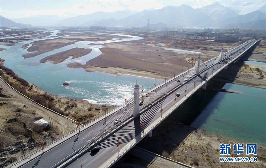 拉薩市環(huán)城路納金大橋段(4月3日無人機拍攝)。 新華社記者 晉美多吉 攝