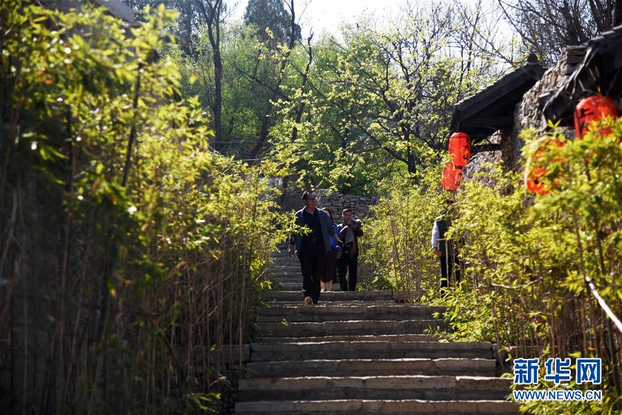 3月31日,游客在上九山村游覽。山東省鄒城市石墻鎮(zhèn)上九山村始建于宋代,是一座依山而建的石頭村,有明清建筑風格的古民居300余套,古樸傳統(tǒng)的村貌吸引眾多游客。2019年1月,上九山村入選第七批中國歷史文化名村。 新華社記者 王凱 攝