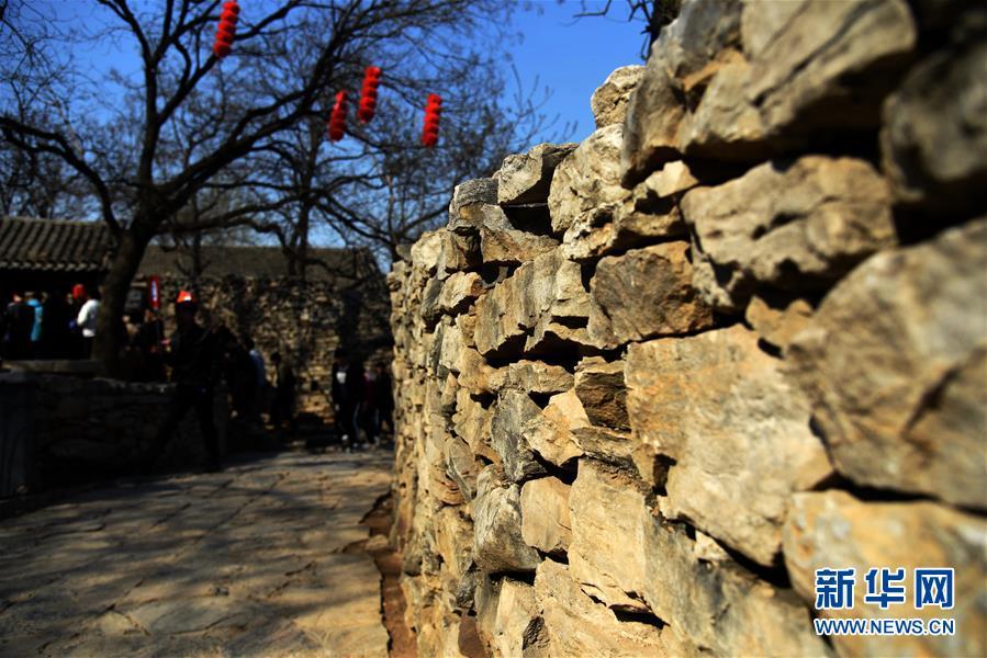 3月31日,游客在上九山村入口處游覽。山東省鄒城市石墻鎮(zhèn)上九山村始建于宋代,是一座依山而建的石頭村,有明清建筑風格的古民居300余套,古樸傳統(tǒng)的村貌吸引眾多游客。2019年1月,上九山村入選第七批中國歷史文化名村。 新華社記者 王凱 攝