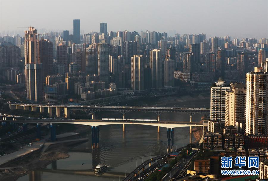 這是4月8日拍攝的重慶城市景象。 千里為重,廣大為慶。城在山水間、山水在城中,重慶頗具特色的立體城市景觀是城市靚麗的名片。 新華社記者 王全超 攝