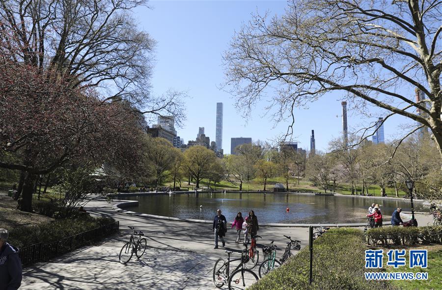 4月16日,人們?cè)诿绹?guó)紐約中央公園游玩。 新華社記者 王迎 攝