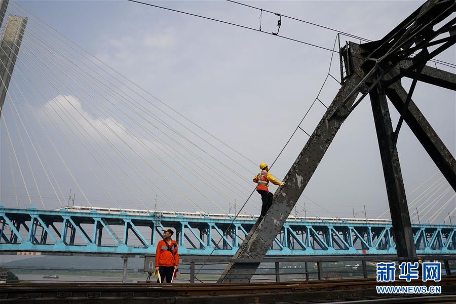 中國鐵路成都局有限公司重慶工務(wù)段的兩名橋隧工在重慶白沙沱長江大橋進(jìn)行巡檢作業(yè)(4月23日攝)。 4月23日下午5點(diǎn)40分,隨著重慶白沙沱長江大橋通行的最后一列客運(yùn)列車順利通過,這座“服役”了59年的重慶首座長江大橋進(jìn)入“退役”倒計(jì)時。4月24日后,所有列車將改線經(jīng)距白沙沱長江大橋約100米的新白沙沱長江特大橋通行,新橋“接力”老橋,運(yùn)輸能力將得到大幅提升。 白沙沱長江大橋于1958年開工,1960年通過首趟列車,是繼武漢長江大橋之后的第二座長江大橋。 新華社記者 劉潺 攝