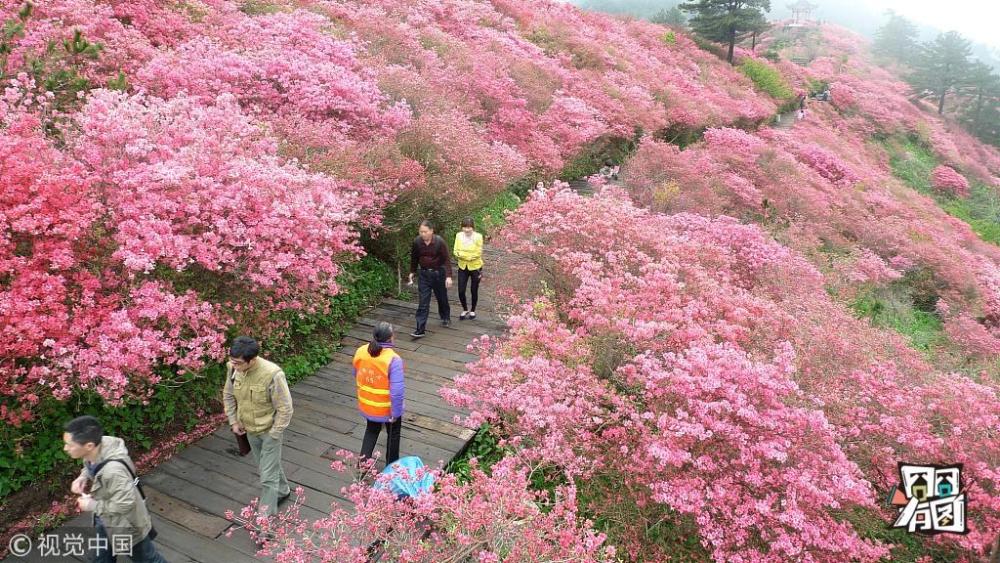 【湖北麻城杜鵑中國最大的古杜鵑原始群落】湖北麻城分布有100萬畝古杜鵑,其中包括龜峰山風景區(qū)的10萬畝原生態(tài)古杜鵑群落。經專家考證,其面積之大、年代之久、保存之好、密度之高、花色之美,堪稱華中一絕,是迄今發(fā)現(xiàn)的我國最大的古杜鵑原始群落。其中,龜峰山“杜鵑花王”樹齡300多年,次生枝干達56枝,每枝干莖在6厘米至10厘米之間,樹冠冠莖達6米,覆蓋面積達35平方米,龜峰山古杜鵑群落2009年04月16日被收入上海大世界吉尼斯之最,以其面積之大、年代之久、密度之之高、保存之好、花色之美。