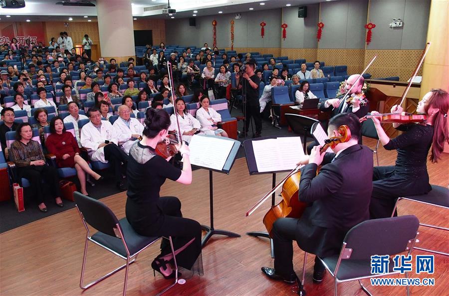 4月25日,上海交響樂(lè)團(tuán)的藝術(shù)家在復(fù)旦大學(xué)附屬腫瘤醫(yī)院為患者和醫(yī)護(hù)人員演奏。 當(dāng)日,第一場(chǎng)“全城交響·上交為你而來(lái)”音樂(lè)會(huì)在復(fù)旦大學(xué)附屬腫瘤醫(yī)院報(bào)告廳奏響,為患者及醫(yī)護(hù)人員獻(xiàn)上一場(chǎng)專(zhuān)屬音樂(lè)會(huì)。“全城交響·上交為你而來(lái)”是上海交響樂(lè)團(tuán)2019年向全上海的機(jī)構(gòu)及個(gè)人開(kāi)放的公益演出項(xiàng)目。 新華社記者 任瓏 攝