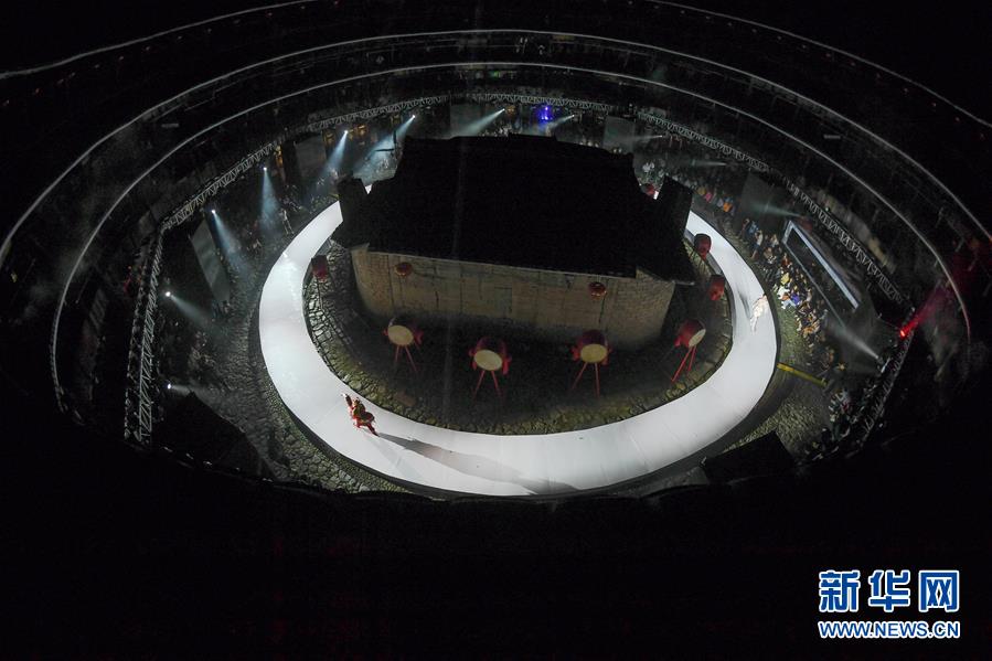 4月27日,模特在位于福建省南靖縣的土樓裕昌樓展示服飾。 當(dāng)日,土樓光語國際時尚大秀在福建省南靖縣的土樓裕昌樓內(nèi)舉行。這場融匯文化、時尚與旅游元素的大秀,通過傳統(tǒng)與時尚的有機融合,展現(xiàn)南靖土樓及文化的魅力和風(fēng)采。 新華社記者 宋為偉 攝