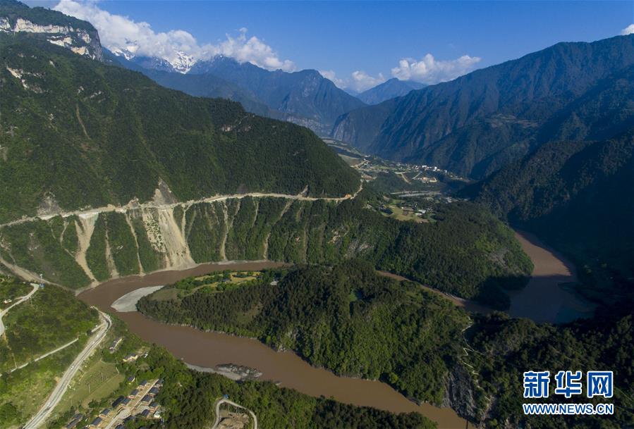 這是4月27日在云南省貢山獨龍族怒族自治縣丙中洛鎮(zhèn)拍攝的“怒江第一灣”(無人機(jī)拍攝)。 怒江自青藏高原一路奔騰向南流至云南省貢山獨龍族怒族自治縣丙中洛鎮(zhèn),高黎貢山與碧羅雪山夾江而立,江水順山勢急轉(zhuǎn)形成了一個氣勢磅礴的半圓形大灣,被稱為“怒江第一灣”。 新華社記者 江文耀 攝