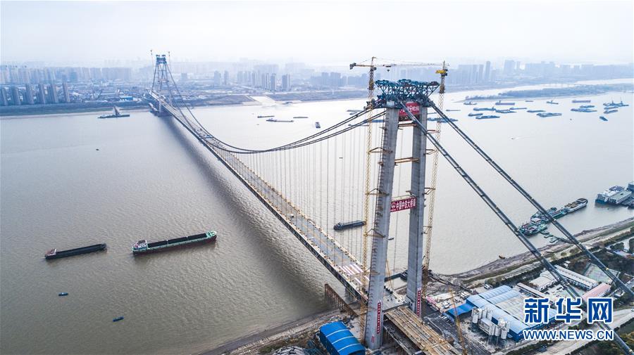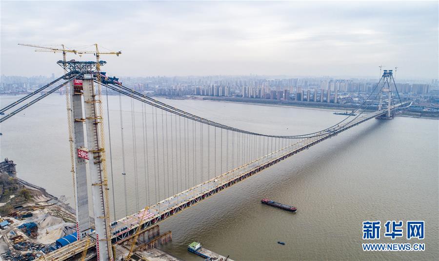 當(dāng)日,隨著最后一節(jié)鋼梁吊裝到位,由中鐵大橋院設(shè)計(jì)、中鐵大橋局施工的武漢楊泗港長(zhǎng)江大橋順利合龍,標(biāo)志著這座世界最大跨度雙層公路懸索橋主體工程完工,進(jìn)入橋面鋪裝階段。 武漢楊泗港長(zhǎng)江大橋是武漢市內(nèi)建設(shè)的第十座長(zhǎng)江大橋,也是長(zhǎng)江上首座雙層公路大橋。 新華社記者 肖藝九 攝