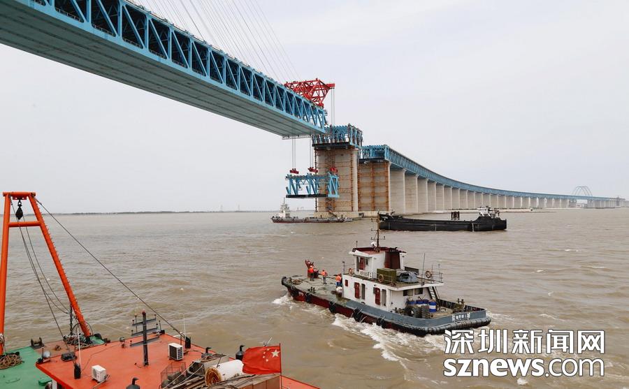 滬通長(zhǎng)江大橋主航道橋首個(gè)鋼梁段即將合龍
