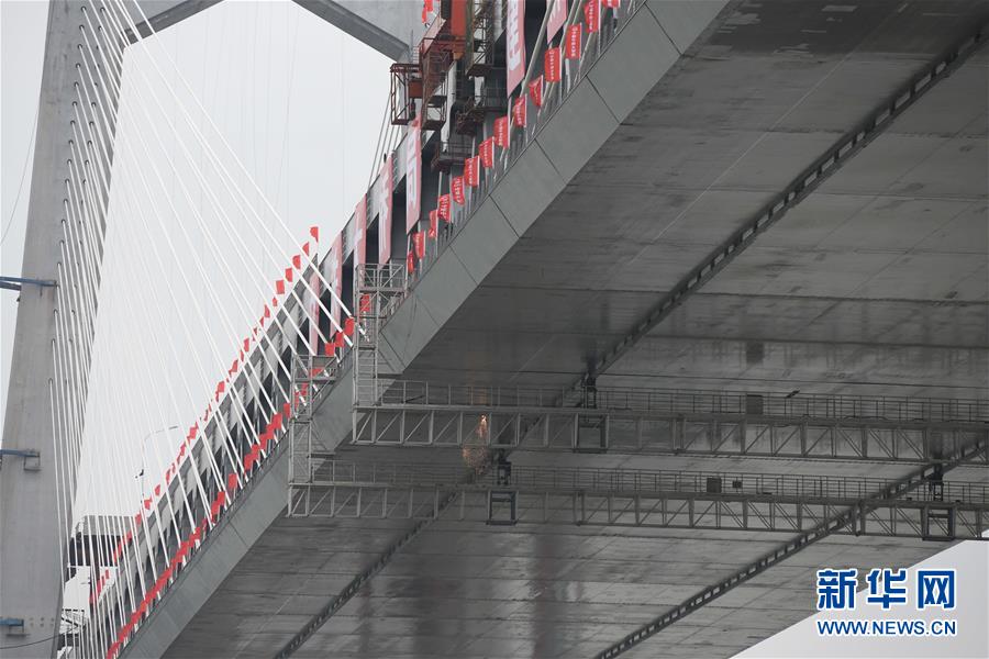商合杭鐵路蕪湖長(zhǎng)江公鐵大橋合龍現(xiàn)場(chǎng)(4月26日攝)。