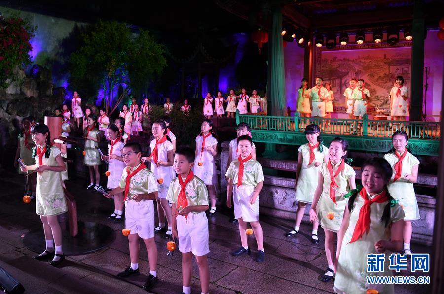 5月5日,小學生在福州三坊七巷的水榭戲臺表演。 福州三坊七巷為國內(nèi)現(xiàn)存規(guī)模較大、保護較為完整的歷史文化名街區(qū),是中國十大歷史文化名街之一。位于三坊七巷內(nèi)的水榭戲臺經(jīng)常舉辦傳統(tǒng)文化演出吸引游客慕名前來觀賞。 新華社記者 林善傳 攝