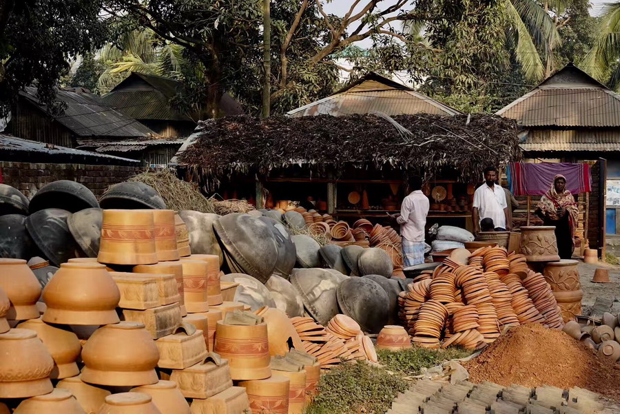 達卡遠郊區(qū)一個印度教徒聚居的村莊,幾乎家家戶戶都開辦制陶作坊,以傳統(tǒng)工藝制作陶盆、陶罐、陶盤和建筑裝飾陶器,遠銷孟加拉國內(nèi)各地。李仁奇 攝