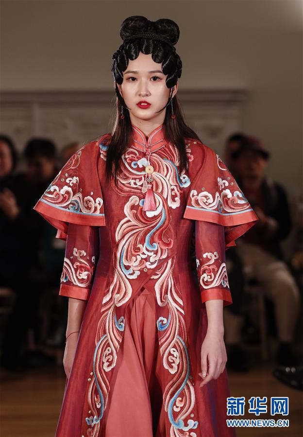 5月8日,一名模特在英國(guó)倫敦走秀。 由浙江省文化和旅游廳舉辦的浙江傳統(tǒng)工藝創(chuàng)新展8日在倫敦開幕。為期4天的展覽是第五屆倫敦手工藝周的重要活動(dòng)之一。 新華社記者 韓巖 攝
