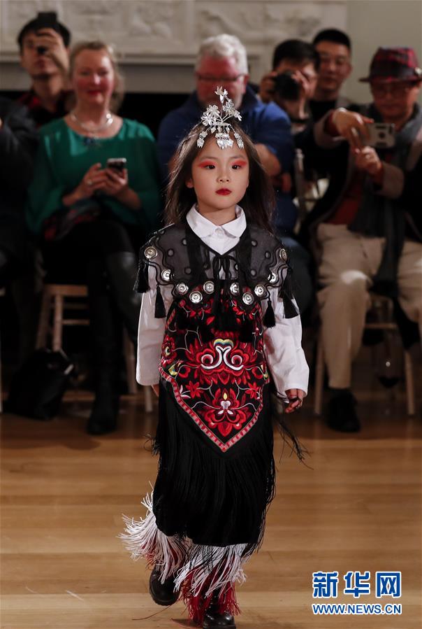 5月8日,一名兒童模特在英國倫敦走秀。 由浙江省文化和旅游廳舉辦的浙江傳統(tǒng)工藝創(chuàng)新展8日在倫敦開幕。為期4天的展覽是第五屆倫敦手工藝周的重要活動之一。 新華社記者 韓巖 攝