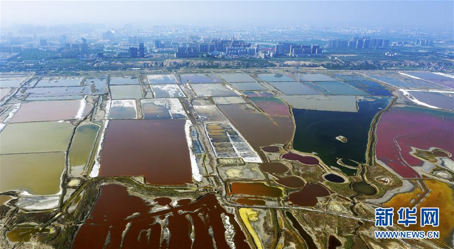 這是4月23日無人機(jī)拍攝的山西運城鹽湖。新華社記者 曹陽 攝