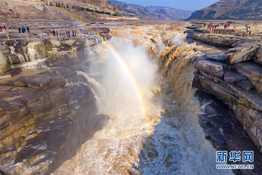 這是2018年3月22日無人機(jī)拍攝的山西吉縣黃河壺口瀑布。新華社記者 曹陽 攝