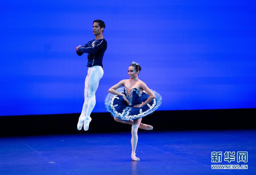 5月14日,在北京天橋藝術(shù)中心,菲律賓芭蕾舞團(tuán)演員杰邁瑪·雷耶斯(右)、維克托·馬果表演古典大雙人舞。 當(dāng)日,作為亞洲文化展演活動的開幕演出,中央芭蕾舞團(tuán)攜手韓國、菲律賓等國家的藝術(shù)家共聚一堂,演繹了一場精彩的《亞洲芭蕾之夜》。 新華社記者 金良快 攝
