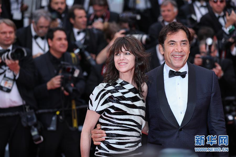 5月14日,在法國(guó)南部城市戛納,法國(guó)演員夏洛特·甘斯堡(左)和西班牙演員哈維爾·巴爾德姆亮相開幕式紅毯。 5月14日,第72屆戛納電影節(jié)在戛納開幕。本屆電影節(jié)將持續(xù)至5月25日。 新華社記者 張鋮 攝