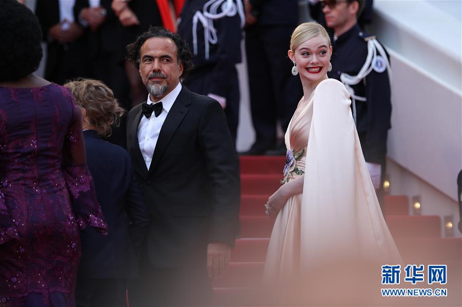 5月14日,在法國(guó)南部城市戛納,戛納電影節(jié)主競(jìng)賽單元評(píng)委墨西哥導(dǎo)演亞歷杭德羅·伊尼亞里圖(左)和美國(guó)演員埃勒·范寧亮相開幕式紅毯。 5月14日,第72屆戛納電影節(jié)在戛納開幕。本屆電影節(jié)將持續(xù)至5月25日。 新華社記者 張鋮 攝