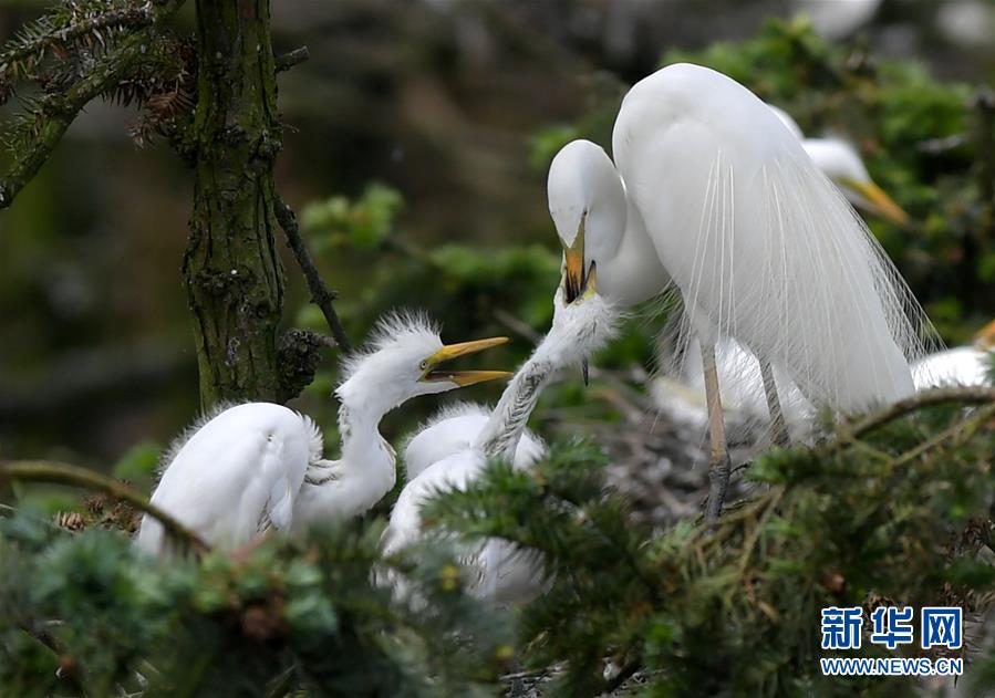 在江西省南昌市新建區(qū)象山森林公園內(nèi),白鷺和自己的雛鳥(niǎo)在一起(5月21日攝)。 近日,在江西省南昌市新建區(qū)象山森林公園內(nèi),已安家筑巢的大批鷺鳥(niǎo)陸續(xù)孵化出了后代。象山森林公園有著“鷺鳥(niǎo)王國(guó)”的美譽(yù),生態(tài)環(huán)境良好,每年都會(huì)吸引白鷺、蒼鷺、夜鷺等種類的鷺鳥(niǎo)飛抵棲息和繁衍后代。 新華社記者 彭昭之 攝