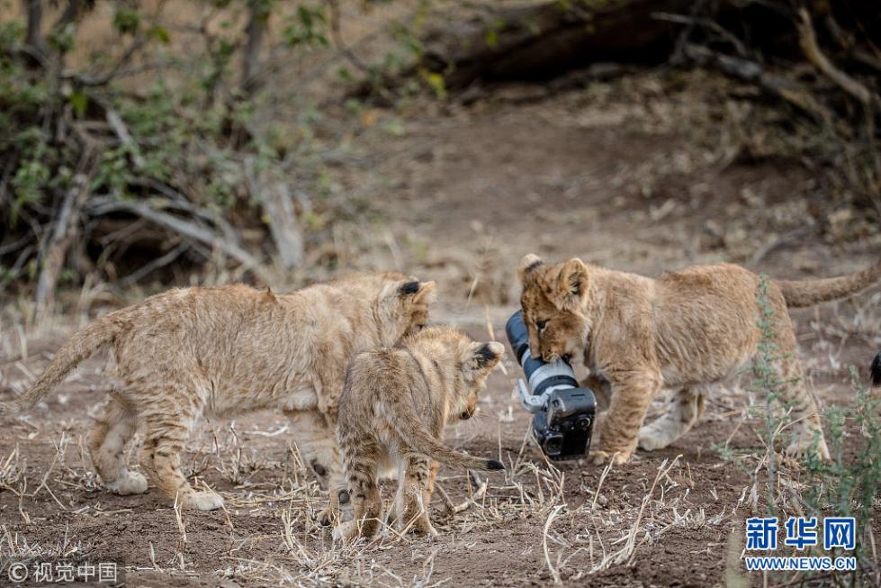 近日,非洲博茨瓦納馬沙圖野生動(dòng)物保護(hù)區(qū)內(nèi)一頭獅子叼起攝影師掉落在地上的相機(jī),之后還將相機(jī)交給小獅子們玩耍,看起來(lái)十分好奇,而攝影師非常無(wú)奈?,F(xiàn)年57歲的叢林探險(xiǎn)家Barbara Jensen Vorster在一輛越野車上為馬沙圖野生動(dòng)物保護(hù)區(qū)的獅群拍照時(shí),相機(jī)不小心掉到了地上。砰的一聲響驚動(dòng)了母獅子,它向攝影師方向移動(dòng),迫使探險(xiǎn)隊(duì)撤退。(圖片來(lái)源:視覺(jué)中國(guó))