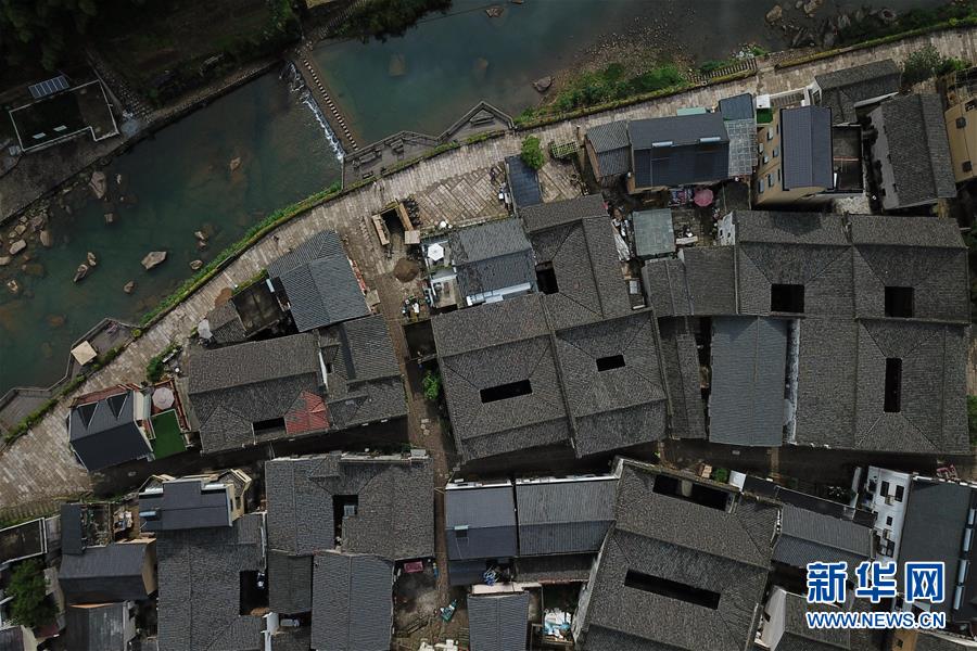 5月26日無人機(jī)拍攝的富春江鎮(zhèn)石舍村的古建筑群。 石舍村是浙江省桐廬縣富春江鄉(xiāng)村慢生活體驗(yàn)區(qū)中的三個村落之一,位置偏僻,依溪而居,風(fēng)景秀美。近年來,石舍村結(jié)合古建筑保護(hù)工作,在清潔、美化村莊的基礎(chǔ)上,對一些廢棄古建筑進(jìn)行修繕,引入咖啡館、民宿等文化創(chuàng)意類項(xiàng)目,優(yōu)良的生態(tài)環(huán)境和濃郁的文化氛圍吸引大批游客前來體驗(yàn),小山村走上了一條發(fā)展美麗經(jīng)濟(jì)之路。2018年,石舍村接待游客10萬8千余人次,旅游經(jīng)營凈收入1260余萬元。 新華社記者 黃宗治 攝