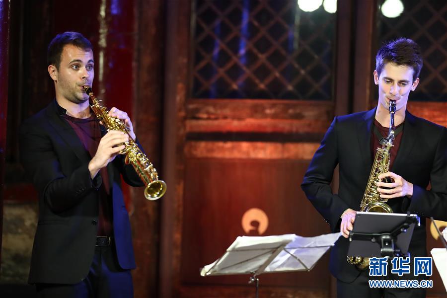 5月26日,凱比亞特樂(lè)隊(duì)成員在音樂(lè)會(huì)上表演。 當(dāng)日,作為第十九屆“相約北京”藝術(shù)節(jié)系列演出之一,西班牙凱比亞特樂(lè)隊(duì)薩克斯四重奏音樂(lè)會(huì)在北京Temple東景緣上演。 新華社記者 張玉薇 攝