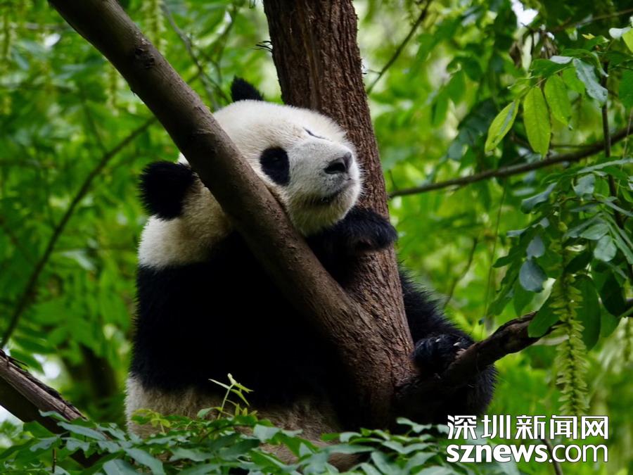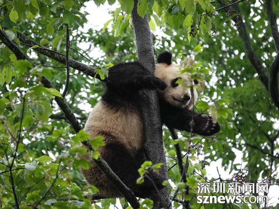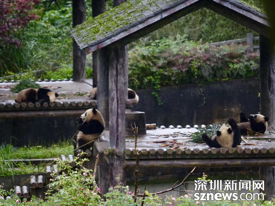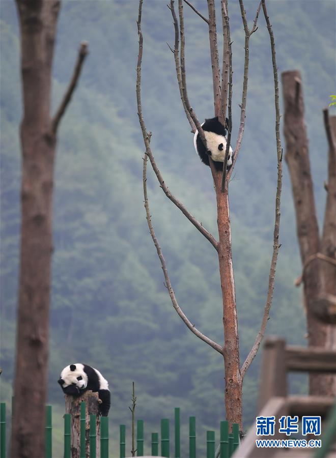 5月25日在中國大熊貓保護(hù)研究中心臥龍神樹坪基地的“熊貓幼兒園”內(nèi)拍攝的大熊貓。