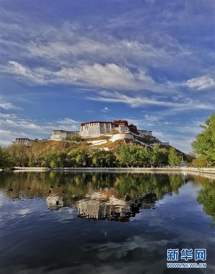 藍天白云下的布達拉宮(4月30日攝)。