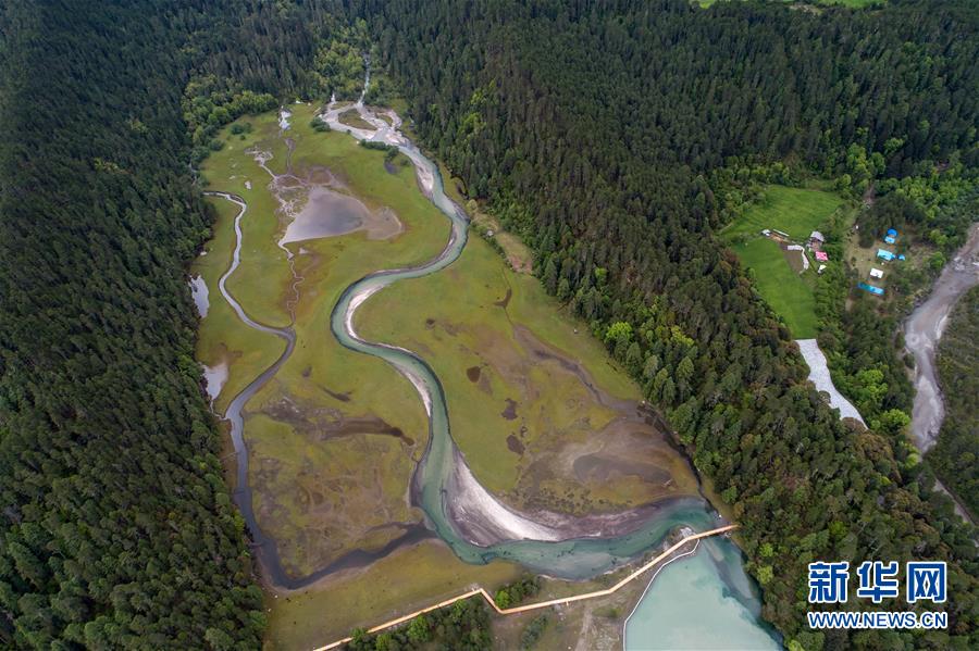 被譽為“拉薩之肺”的拉魯濕地(6月5日無人機拍攝)。